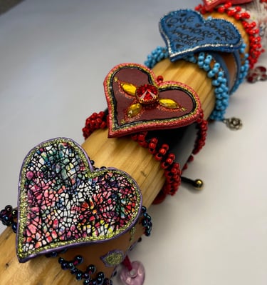 Mostacillas y resinas, para dar detalle y acabado artesanal.